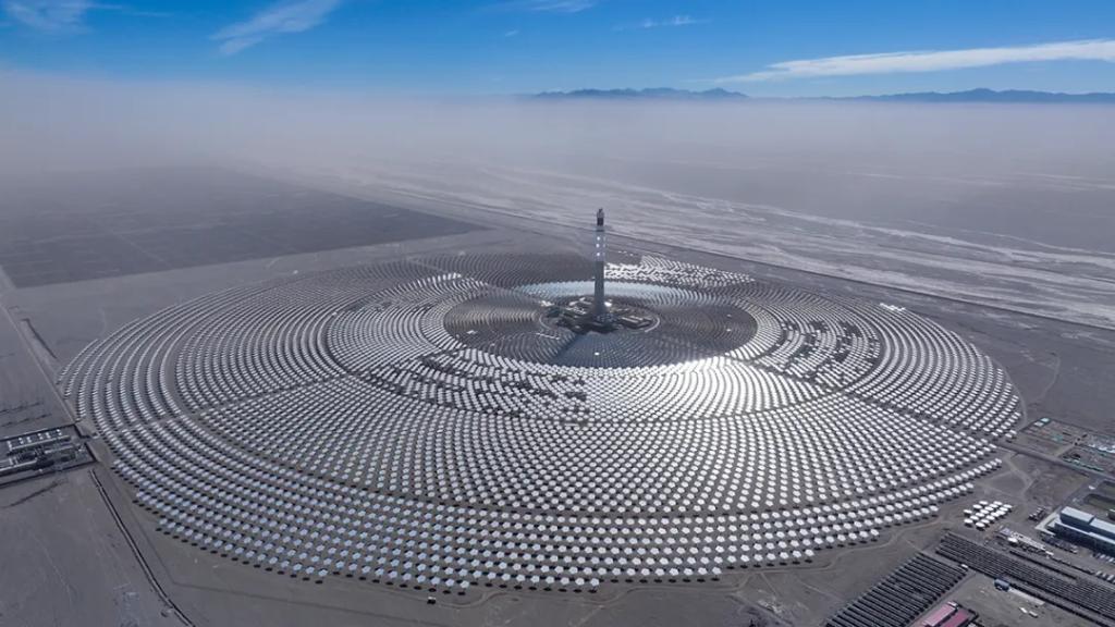 2024年1月,全部11960面五边形定日镜完成安装。2024年11月,成功实现聚光集热系统首次热态升温运行(熔盐上塔)。